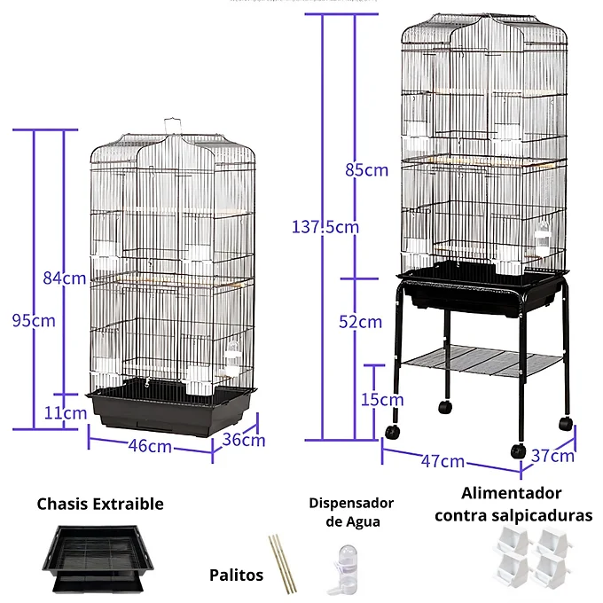 – Espacio amplio – Ideal para aves pequeñas y medianas (medidas: 137 cm alto x 47 cm ancho x 37 cm largo).