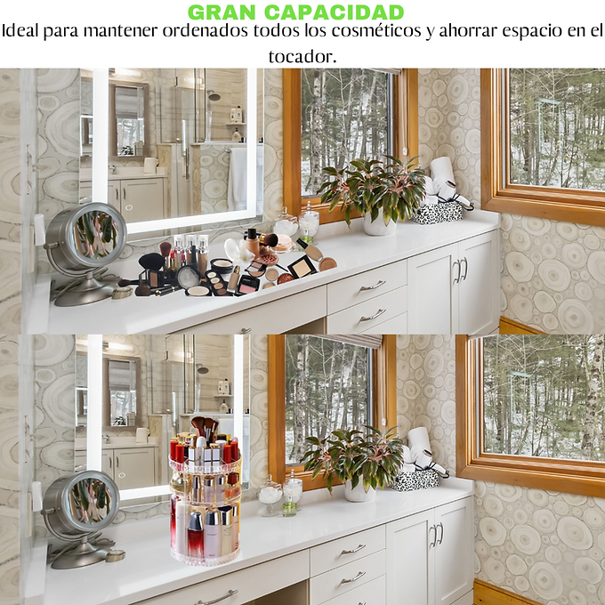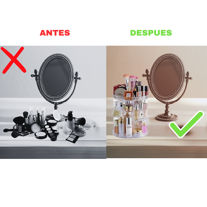 – AHORRA ESPACIO: Optimiza tu área de belleza y evita el caos de productos revueltos.