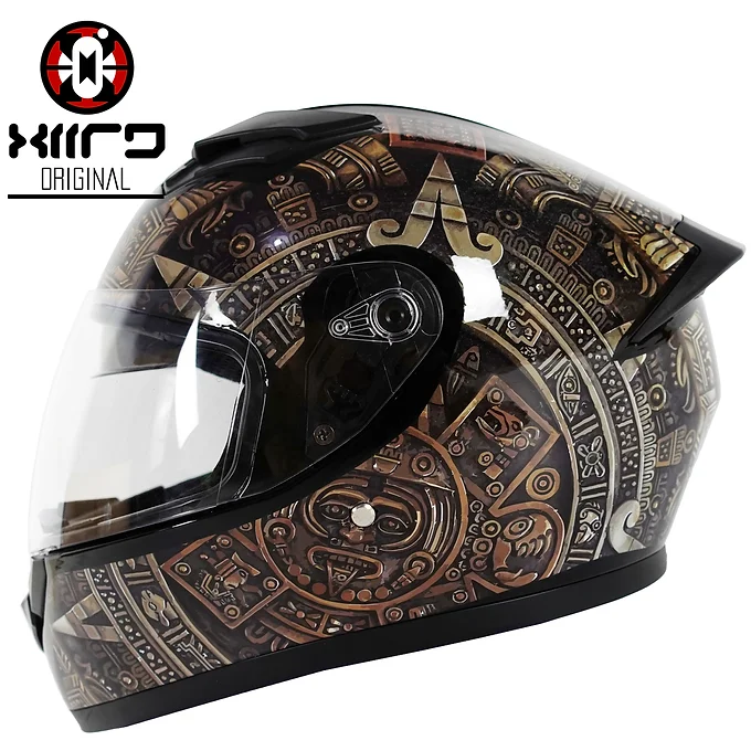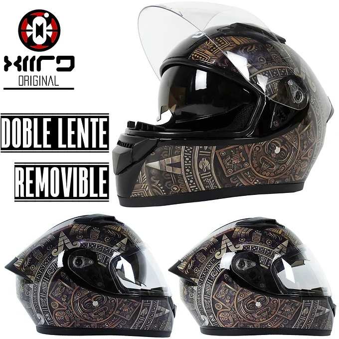 CASCO CERTIFICADO DOT CON DOBLE LENTE, DISEÑO CALENDARIO AZTECA
