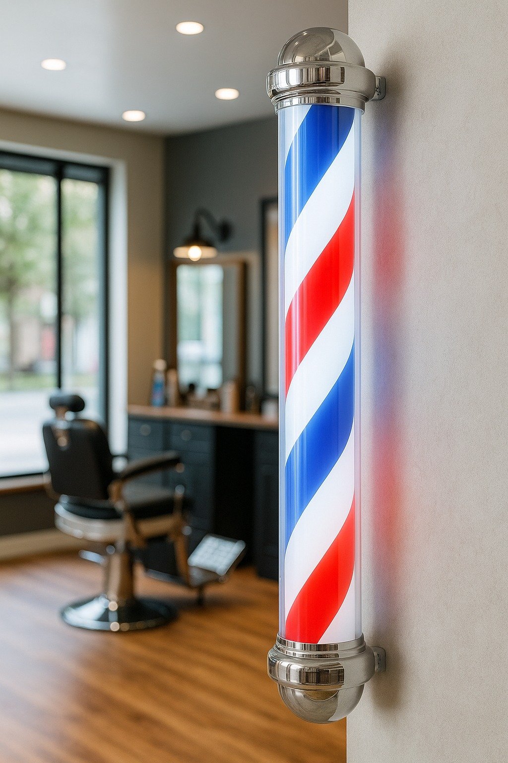 Este poste tipo caramelo no es solo un accesorio barbería: es una declaración visual que habla de tu compromiso con la calidad, la atención al detalle y la experiencia del cliente. Mejora la iluminación de tu fachada y convierte las miradas en visitas.