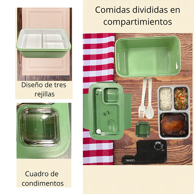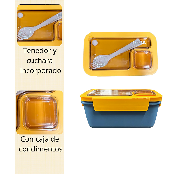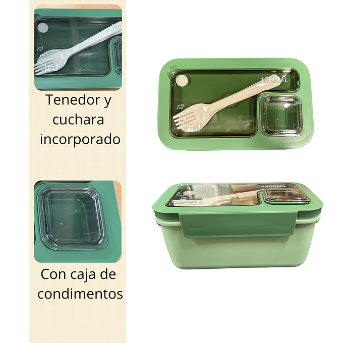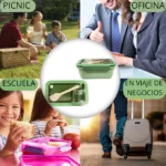 – Cubiertos integrados – Incluye tenedor y cuchara en la tapa (¡nunca más los olvidarás!).