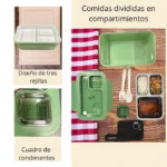 – 2 compartimentos espaciosos – Organiza tu comida de manera eficiente (ideal para comidas saludables).