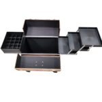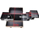 – Interior tipo “estación de maquillaje”: Compartimentos personalizables para brochas, paletas, bases, sombras y accesorios profesionales.