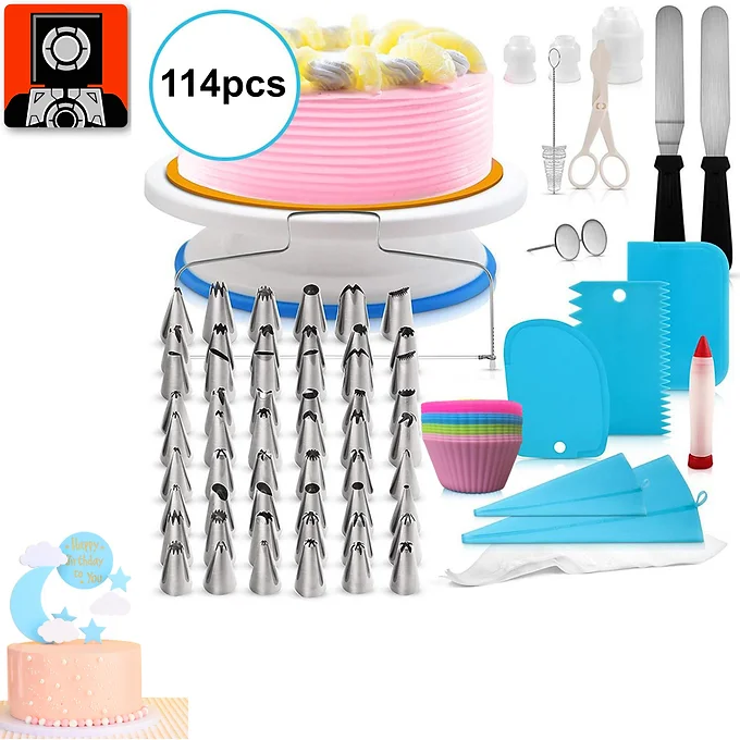 3. Herramientas de decoración de pasteles: diferentes puntas de tapado, acopladores, bolsillos reutilizables para tuberías, pinchos de flores y bolígrafos decorativos, puede crear una variedad de hermosos patrones en pasteles, pasteles y galletas.