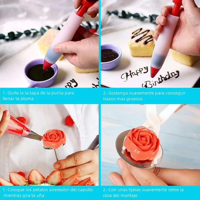 1) Lave todas las herramientas para pasteles en agua tibia antes de usar y limpiar.