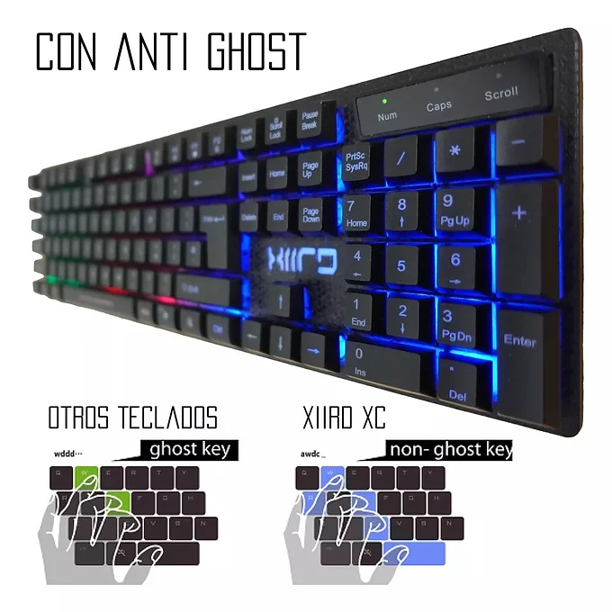 – Teclado Gamer LED multimedia Antighost Espa?ol Modelo XC